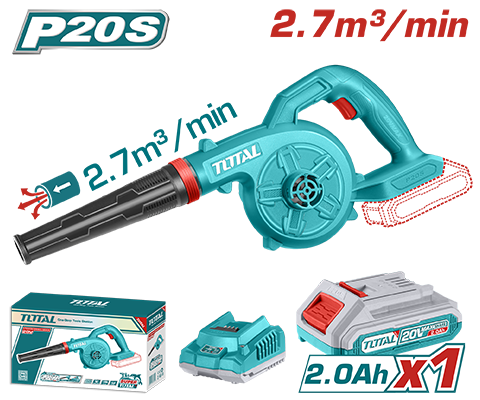 TABLI200281 - كور هواء 20 فولت سرعة واحدة + بطارية 2 امبير+ شاحن TOTAL