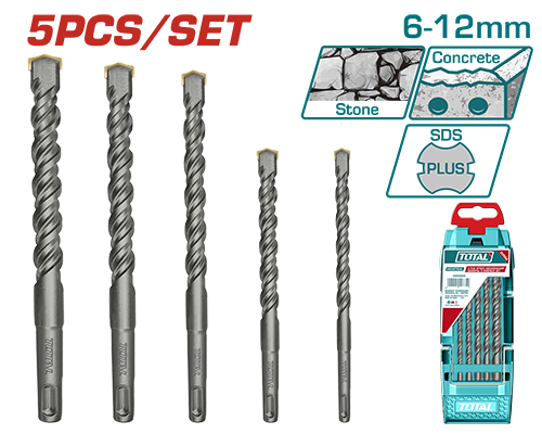 TAC190501 - طقم ريش SDS PLUS -5 قطع صناعي 6+8+2*10+12