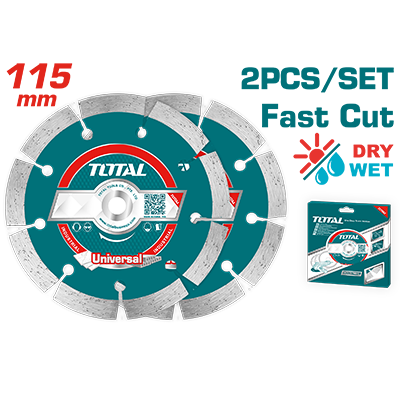 TAC21111532 - مجموعة قطعتين ديسك قص الماس باطون 4.5 انش سماكة 7 مم فتحة 22.2 مم TOTAL رطب + جاف