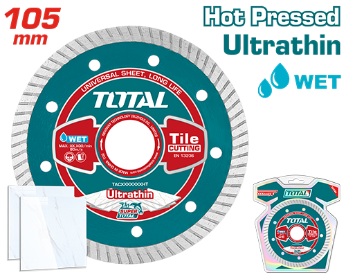 TAC2131051HT - ديسك قص الماس رقيق 4 انش سماكة 1 مم استخدام (السيراميك، البلاط، الرخام، الطوب) فتحة 20 مم TOTAL رطب