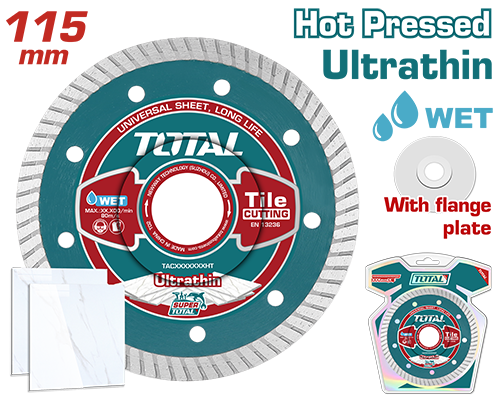 TAC2131151HT - ديسك قص الماس رقيق 4.5 انش سماكة 0.8 مم (السيراميك، البلاط، الرخام، الطوب) فتحة 22.2 مم TOTAL رطب.