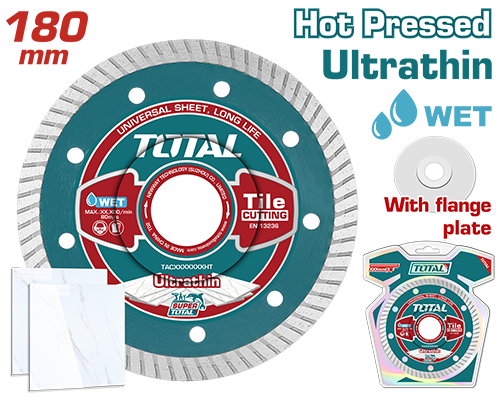 TAC2131801 - ديسك قص الماس رخام 7 إنش عرض الإلماسة 12 مم سماكة القص 3 مم فتحة 22.2 مم TOTAL جاف+رطب