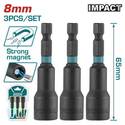 لقم برغي هنغار ممغنطة 8 مم 3 قطع على كرت TOTAL