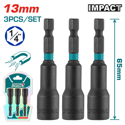 لقم برغي هنغار ممغنطة 13 مم 3 قطع على كرت TOTAL