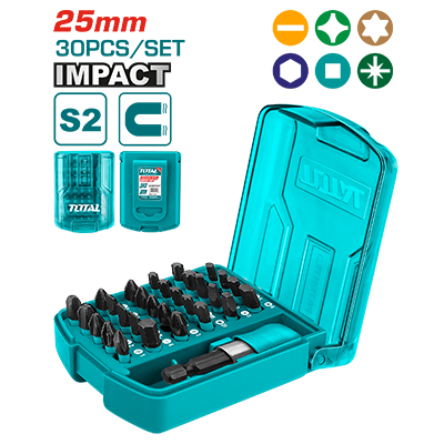 TACSD18306 - مجموعة راس شد مثقب رجاج 30 قطعة شق + مصالب + نجمة + مسدس TOTAL صناعي