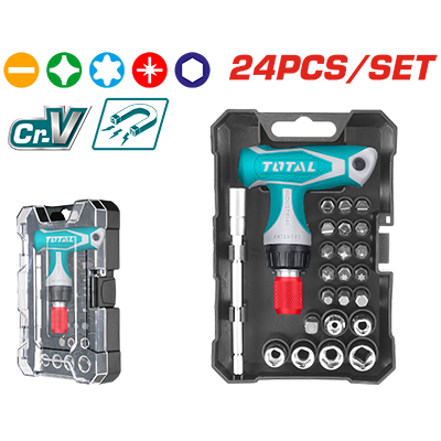 TACSD30186 - طقم مفكات طقطاق براغي + جوز 24 قطعه T-HANDLE ماركة TOTAL (( صناعي ))