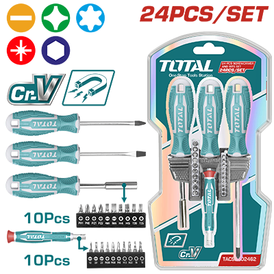 TACSD30246 - طقم مفكات طقطاق براغي 24 قطعه ماركة TOTAL (( صناعي ))