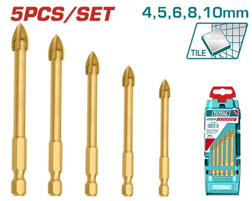TACSD7256 - طقم ريش حفر زجاج 5 قطع قياس 4-5-6-8-10- ماركة TOTAL