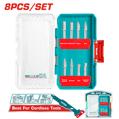 TACSDL10801 - مجموعة 8 قطع رؤوس جلخ محوري من التنغستين TOTAL