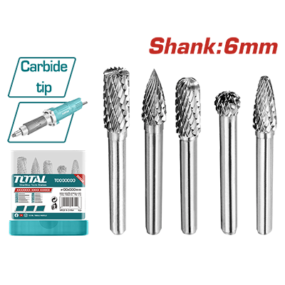 مجموعة رؤوس جلخ محوري كربيد التنغستين 6 مم 5 قطع ضمن علبة بلاستيك TOTAL