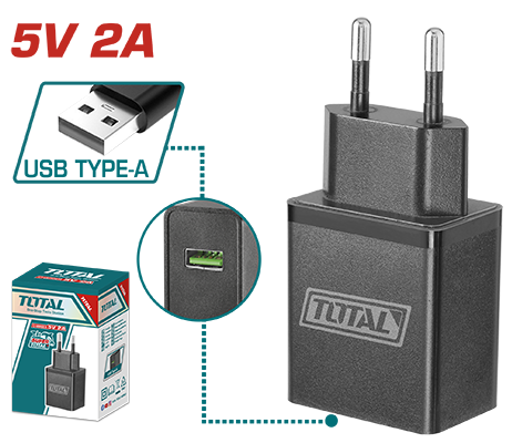 TCLI120502 - رأسية شاحن 5 فولت 2 امبير USB type-A حديث ماركة TOTAL