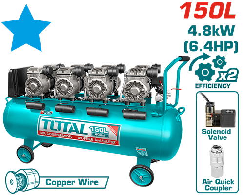 TCS4481508 - كمبرسور ضاغط هواء 150 لتر صامت 4 × 1200 واط TOTAL