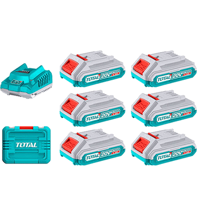 TFBCLI20611 - مجموعة شحن 20 فولط بطارية 2 امبير عدد 6 + شاحن ضمن حقيبة بلاستيك TOTAL حديث