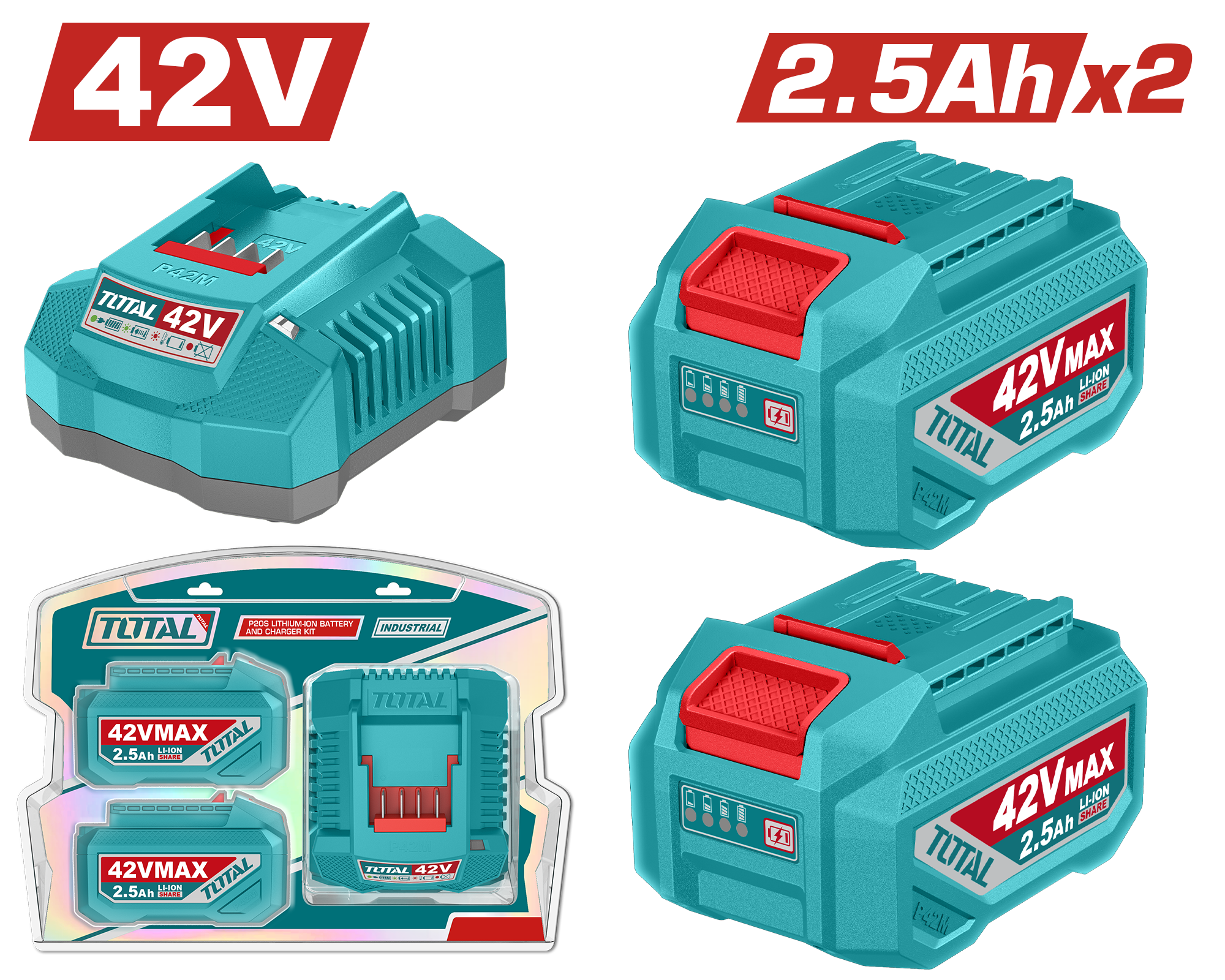 TFBCPM25221 - مجموعة شحن 42 فولت بطارية 2.5 امبير عدد 2 + شاحن على كرت بلاستيك TOTAL