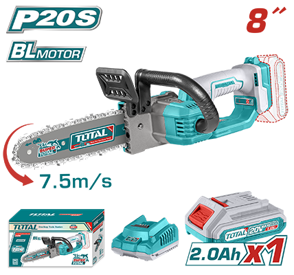 TGSLI20851 - منشار شجر بطارية 20 فولت 8 انش مع بطارية 2 امبير عدد 1 + شاحن ضمن حقيبة بلاسيك TOTAL