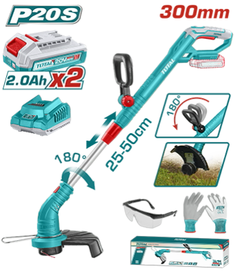 TGTLI20301 - قصاصة عشب 20 فولت ( لطاشة ) مع بطارية 2 امبير وشاحن ونظارات وكفوفTOTAL