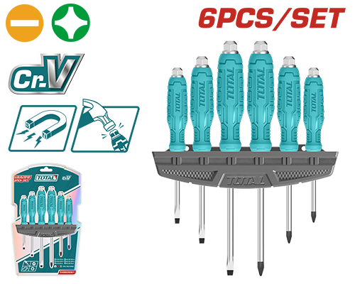THGSS35061 - طقم مفكات براغي طرق 6 قطع ( 3 عادي و3 مصالب ) TOTAL