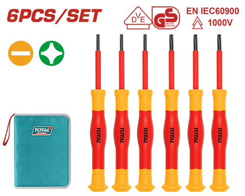 طقم مفكات الكترونية 6 قطع معزولة كهربائيا صناعي ماركة TOTAL