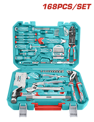 THKTHP21686 - حقيبة عدة 168 قطعة طقم مفكات + عدد منزلية يدوية شاملة ضمن حقيبة بلاستيك ماركة TOTAL