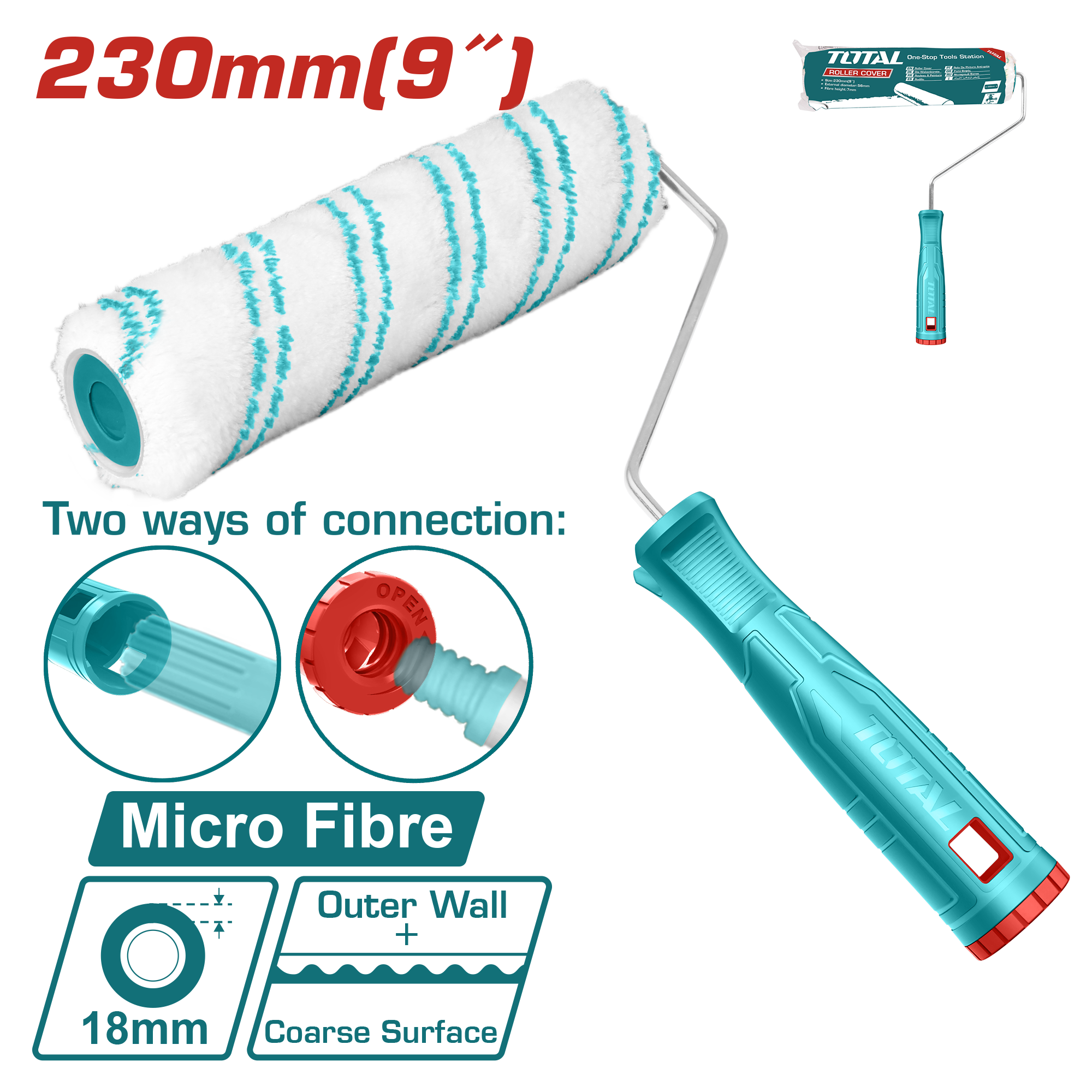 THRHT042302 - رول دهان خارجي اكريليك مع خرطوش قطر 9 انش 18مم صناعي ماركة TOTAL