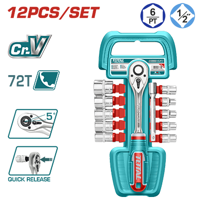 THT141121 - طقم فنجان 1/2 انش 12 قطعه مع مفتاح طقطاق + تطويلة علاقة بلاستيك TOTAL صناعي
