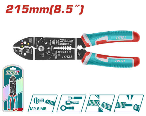 Size:8.5″/215mm With sharp edge for cutting wire With push down wire function With wire stripping function Can strip seven kinds of wire size Can cut five kinds of copper screw size Packed by sliding card