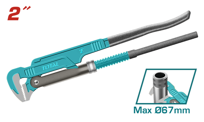 90° Heavy duty type swedish pipe wrench Size:2″ Max clamping diameter:67mm Material:Carbon steel Inactivate treatment Solid rivet Packed by carton box