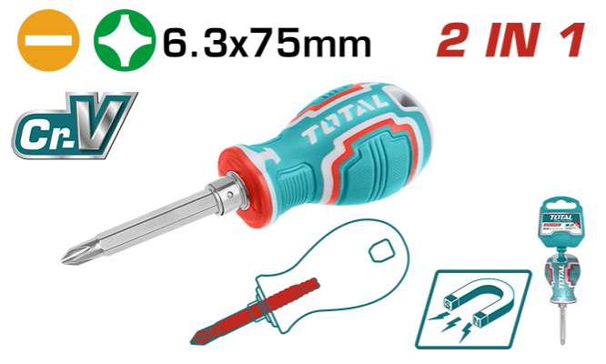 THT250216 - مفك براغي قلاب نجاصة 2ب1 شق +مصالب TOTAL 6.35*75