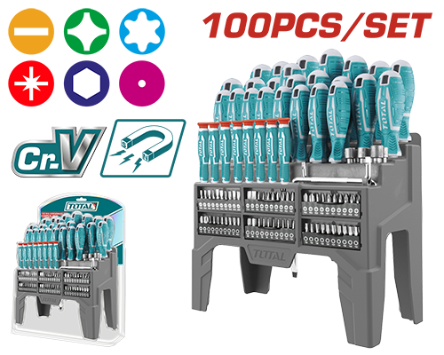 THT250610 - طقم مفكات براغي شق + مصالب 10 قطع ماركة TOTAL (( صناعي ))