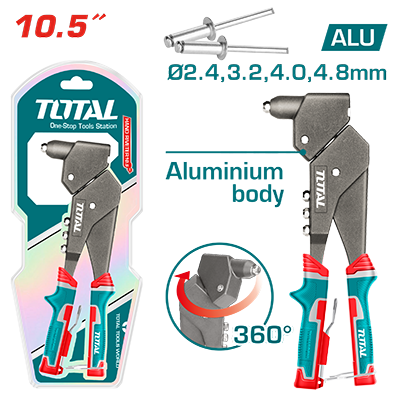 Size:10.5″ 360 degrees of rotation in the head Applicable rivet size:2.4mm,3.2mm,4mm,4.8mm Material:Steel+Aluminum Packed by double blister