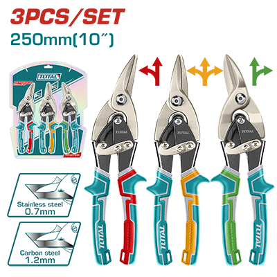 Unique design two tone soft handle 3Pcs Aviation snip (Left,Straight,Right) Length:250mm(10″) Max.cutting thickness: Carbon steel ≤1.2mm Stainless steel ≤0.7mm Packed by double blister