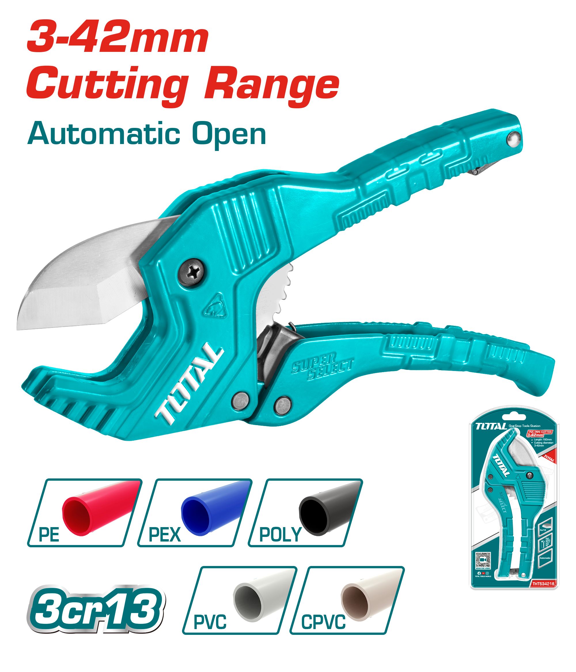 THT534216 - مقص بواري PVC طول 193 مم قطر 3 الى 42 مم TOTAL موديل حديث