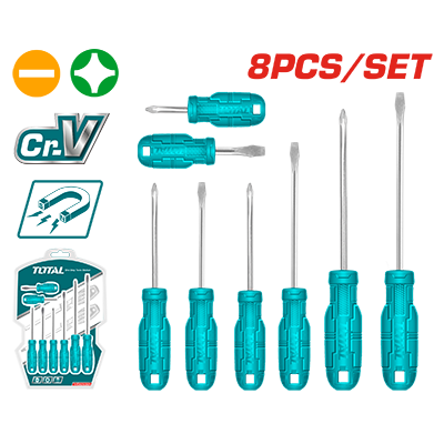 THTDC250801 - طقم مفكات براغي 8 قطع شق +مصالب DC كروم مغناطيس TOTAL