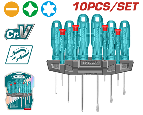 THTDC251001 - طقم مفكات براغي 10 قطع شق +مصالب DC كروم مغناطيس TOTAL