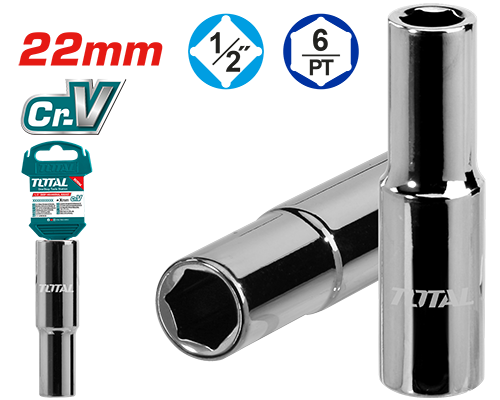 1/2″ Deep Dr.6pt.socket,22MM Material:50BV30,Heat treatment,black nickel plated Packed by plastic hanger