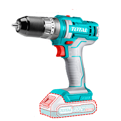 TIDLI201452 - مثقب بطارية 20 فولت رجاج 45 نيوتن + بطارية 2 امبير عدد 2 + شاحن + اكسسوارات ضمن حقيبة بلاستيك TOTAL (ملغى)