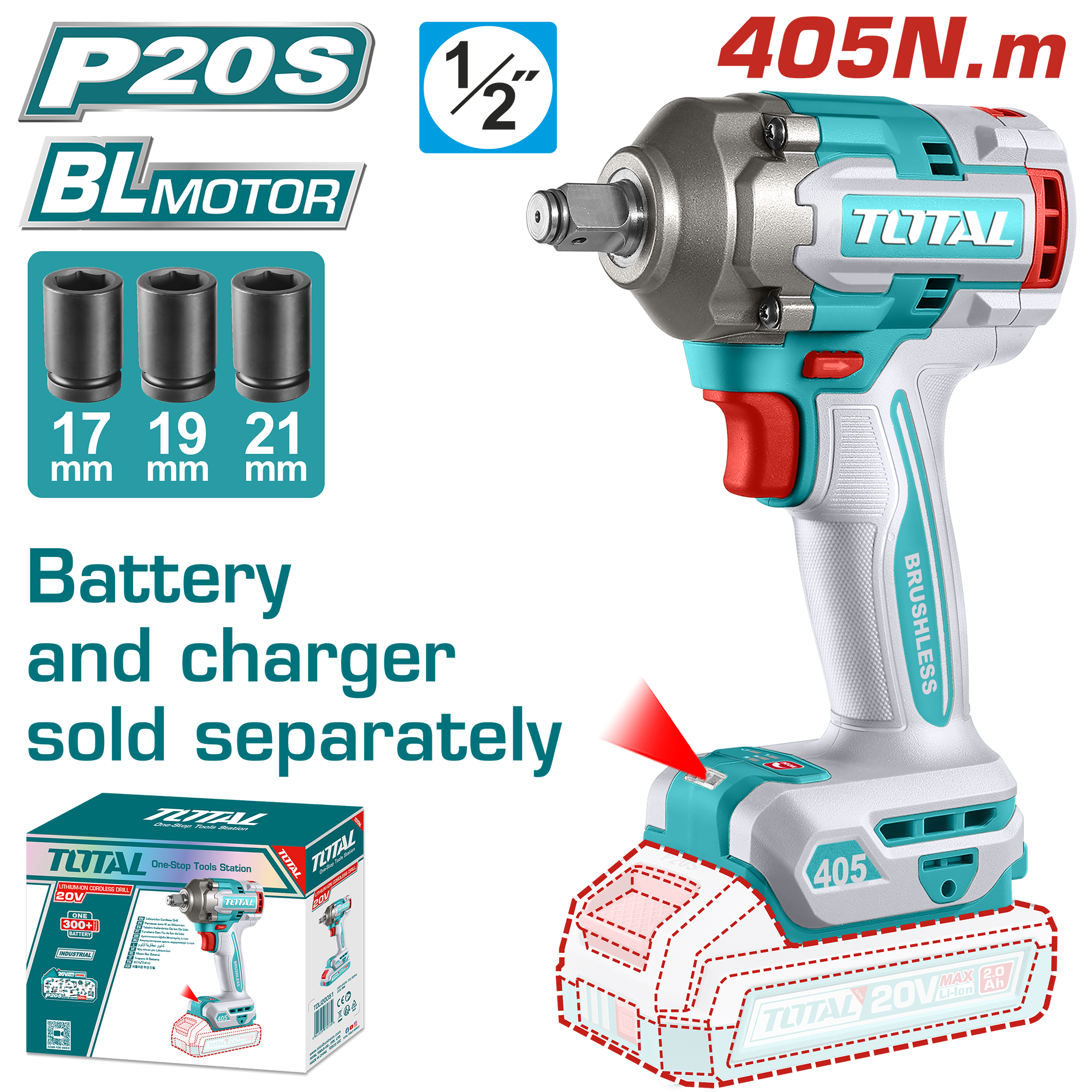 TIWLI20451 - فرد شد بطارية 20 فولت 1/2 انش 405 نيوتن BL + اكسسوارات بدون بطارية وشاحن TOTAL
