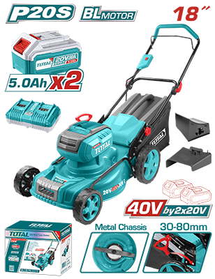 TLMLI20186 - قصاصة عشب عرباية بطارية 40 فولت 18 إنش BL + بطارية 5 امبير عدد 2 + شاحن ثنائي TOTAL حديث