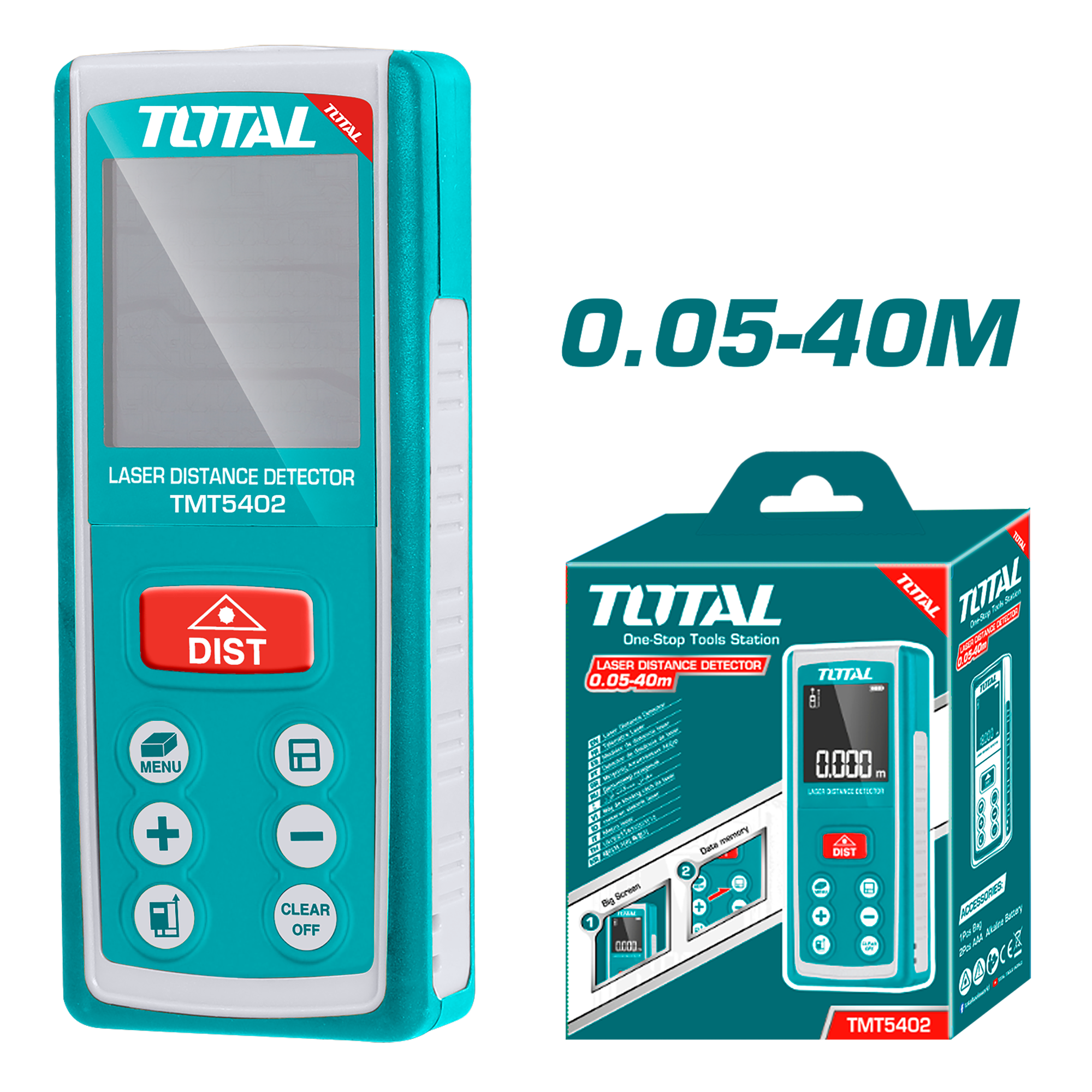 TMT5402 - متر ليزر احمر 40- 0.05 متر ماركة TOTAL