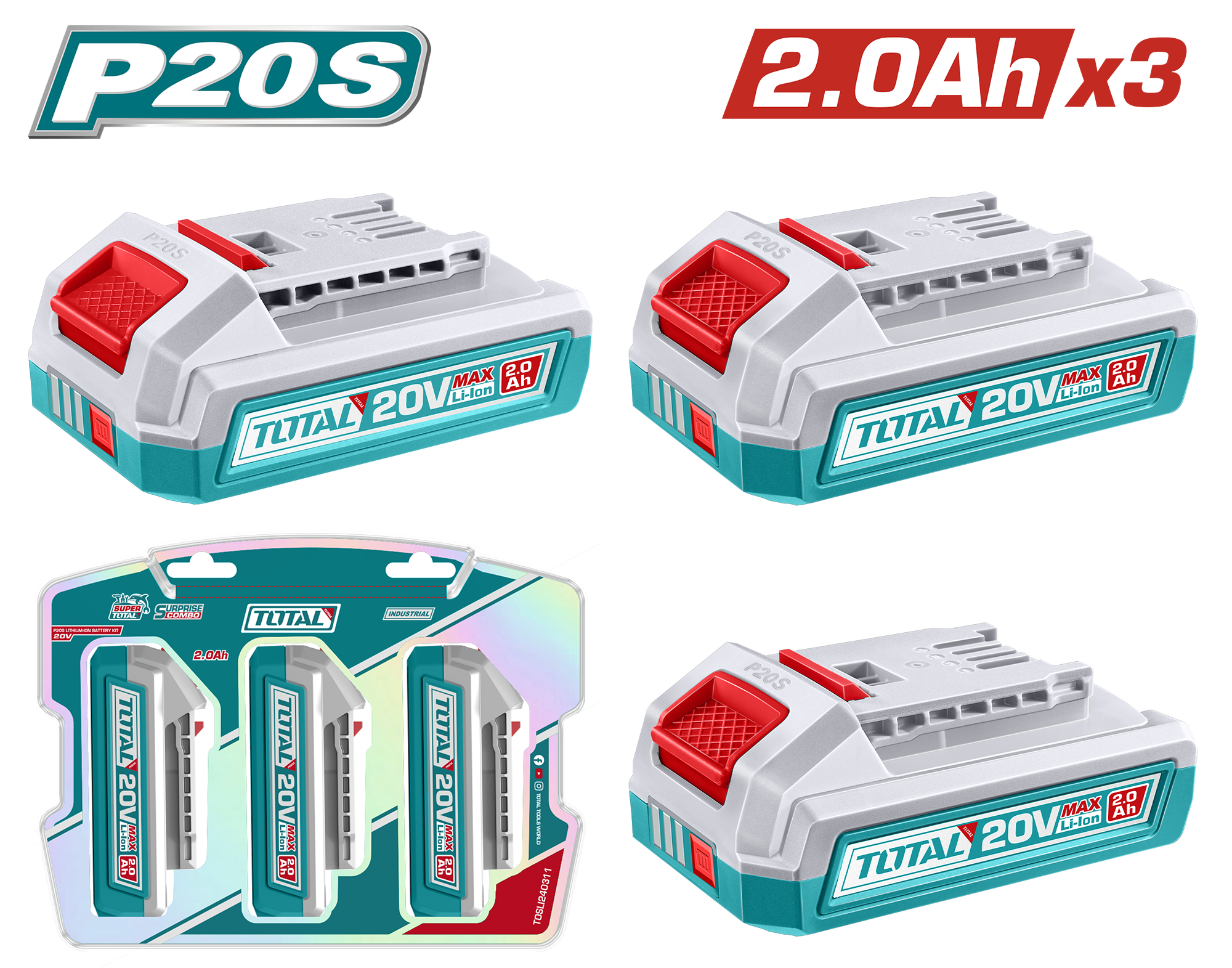 TOSLI240311 - مجموعة شحن 20 فولت بطارية 2 امبير عدد 3 على كرت بلاستيك ماركةTOTAL
