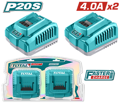 TOSLI250388 - مجموعة شحن شاحن بطارية 20 فولت 4 امبير عدد 2 على كرت بلاستيك TOTAL