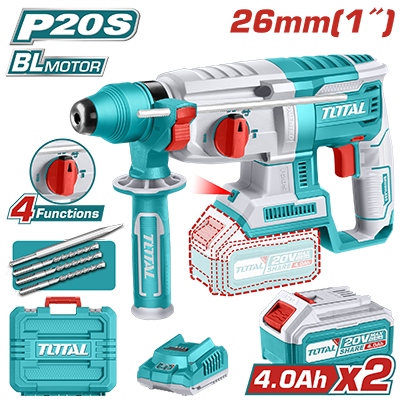 TRHLI202287 - كسارة بطارية 20 فولت 2.5 جول 26 مم BL + بطارية 4 امبير عدد 2 + شاحن + اكسسوارات ضمن حقيبة بلاستيك TOTAL