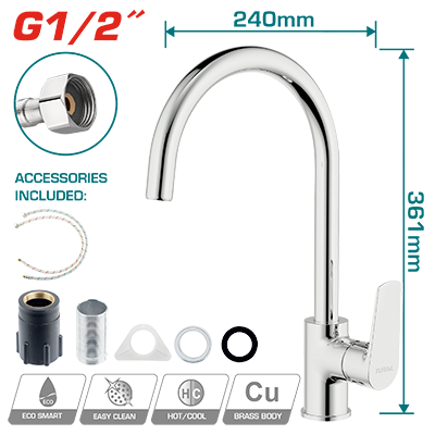 TSLBM23401 - خلاط مجلى ( عكازة ) 1/2 انش ستانلس قلب نحاس صناعي TOTAL