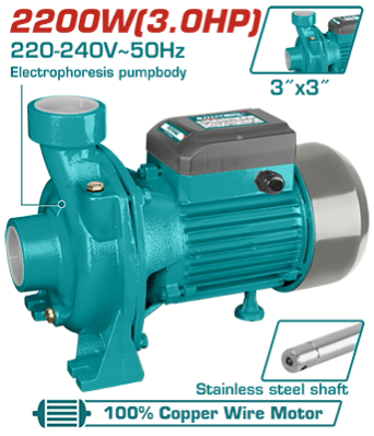 TWP222002 - مضخة 3 حصان تحرير زراعي بروانة نحاس رفع 15 م غزارة 800 ل/د 3 انش 220 فولت TOTAL
