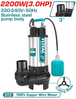 TWP7220026 - قاذورة 3 حصان ستانلس ستيل فرامة مع فواشة رفع 13 متر غزارة 633 ل/د فتحة 3 انش + لوحة تحكم TOTAL ملف نحاس
