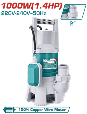 TWP810001 - قاذورة 1.4 حصان 1000 واط بلاستيك مع فواشة رفع 9 م غزارة 333 ل/د فتحة 2 انش TOTAL ملف نحاس