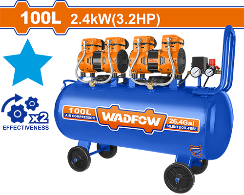 WAP2R41 - كمبرسور ضاغط هواء 100 ليتر 3.2 حصان صامت محركين ملف المنيوم 1200 واط ماركة WADFOW
