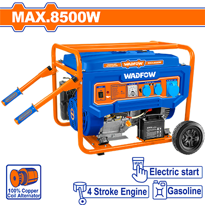 WGEAA10 - مولدة بنزين 8500 واط تشغيل كبسة مرش + حبلة ماركة WADFOW ملف نحاس