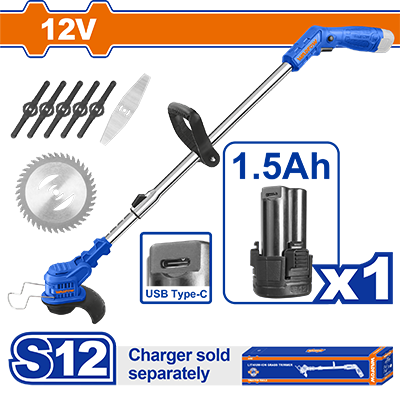 WGTS512 - قصاصة عشب يدوية ( لطاشة ) 12 فولت مع بطارية واكسسوار بدون شاحن ماركة WADFOW