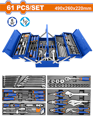 WHS4B61 - حقيبة عدة معدن 3 طبقات 61 قطعة WADFOW